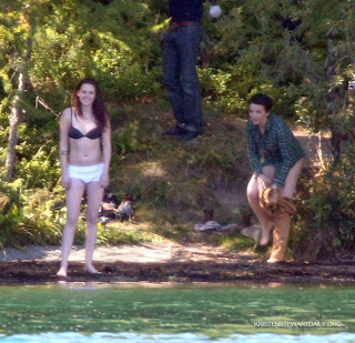 Syuting Film “Sils Maria” Kristen Stewart Pamer Bra dan Tubuh Seksinya - Mantan kekasih Robert Pattinson, Kristen Stewart terlihat sedang menjalani syuting film terbarunya “Sils Maria”. Ia tertangkap kamera sedang melakukan adegan berenang bersama dengan Juliette Binoche.
